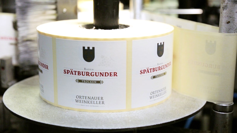 Nachdem sich die Etiketten auf den Weinflaschen und die äußeren Etiketten auf den Weinflaschenkartons stark voneinander in Qualität und Design unterschieden haben, druckt die Ortenauer Weinkellerei GmbH aus Offenburg die Etiketten für die Kartons nun selbst. Diese farbigen Etiketten selbst zu produzieren, soll nicht nur die Qualität erhöhen, sondern auch das flexible und kurzfristige Drucken von individualisierten Labels möglich machen.