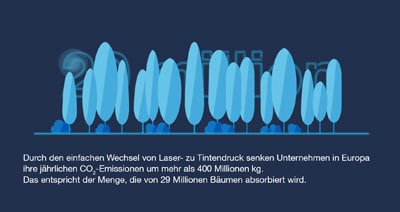 Unternehmen in Europa senken ihre CO2-Emissionen durch einen einfachen Wechsel von Laser- zu Tintendruck jährlich um mehr als 400 Millionen Kilogramm. Eine individuelle Betrachtung des Druckerspezialisten Epson.